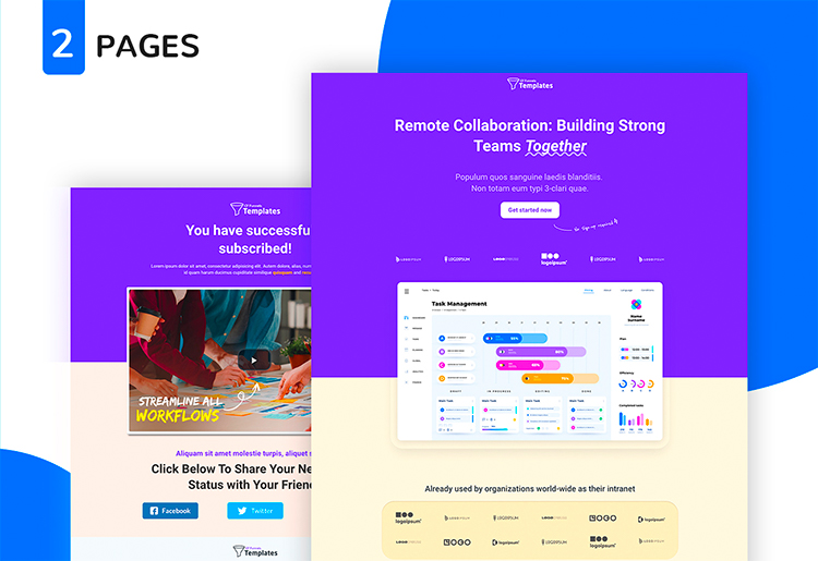 Taskmaster Funnel Template: The Task Master Funnel Template is ideal for businesses looking to offer a streamlined, user-friendly project management solution. Its clean design and straightforward messaging make it an excellent choice for small businesses and startups that need to demonstrate their tool’s ease-of-use and efficiency.
