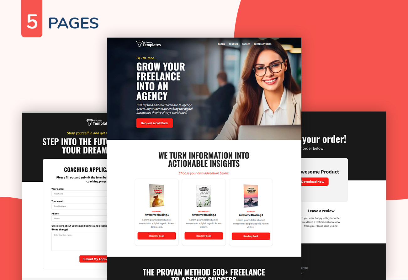 Are you a one-person army battling a tidal wave of client inquiries? Do you spend more time juggling paperwork than showcasing your expertise? The Freelance Expansion Template is your knight in shining armour. Picture this: laser-targeted opt-in funnels magnetically attract high-paying clients, while automated welcome sequences seamlessly onboard them, freeing you to focus on what you do best – delivering exceptional work. This template is the ultimate time-management ninja, transforming you from a hustler into a high-rolling master of your craft.