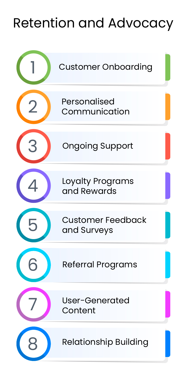 Once you have successfully converted prospects into customers, your focus shifts to retaining them and transforming them into loyal advocates for your brand. This stage is vital for building long-term customer relationships, fostering repeat business, and harnessing the power of word-of-mouth marketing. Let’s explore the key aspects of the retention and advocacy stage: