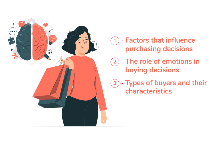 The psychology of buying refers to the various psychological factors that influence a consumer’s decision-making process when making a purchase. This includes their emotions, beliefs, attitudes, motivations, and other cognitive factors that contribute to their decision-making process.