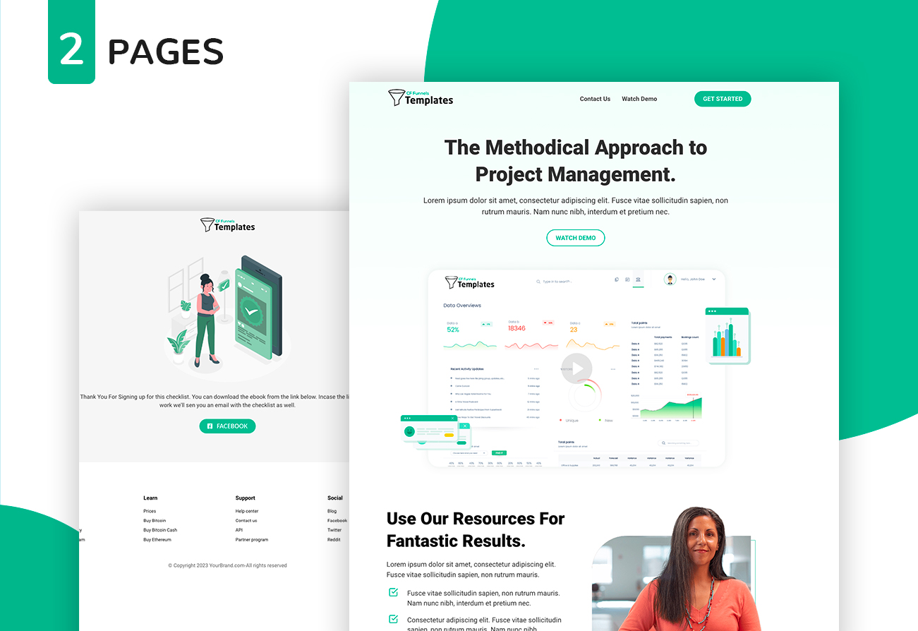 Branding elements: Incorporate your company’s logo, colours, and fonts into the template to reinforce your brand identity throughout the funnel.