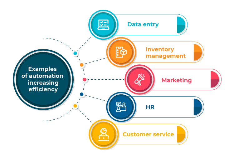 Here are a few examples of how automation can increase efficiency in various areas of a business: