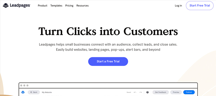 Leadpages is a website builder that specialises in creating high-converting landing pages, pop-ups, and sales pages. It offers a variety of pre-designed templates that are optimised for conversions and can be customised to fit your brand. Leadpages also provides a sales funnel template that guides you through the process of creating a high-converting funnel for your business.