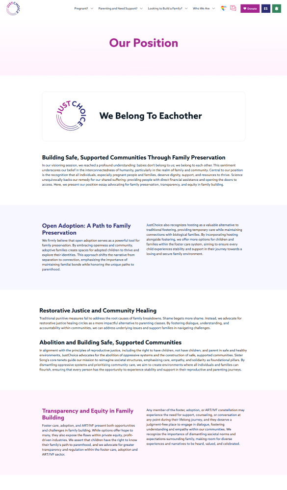 Founded on the belief that justice is choice, the organization offers accurate information and personalized guidance across abortion, adoption, parenting, and family preservation.